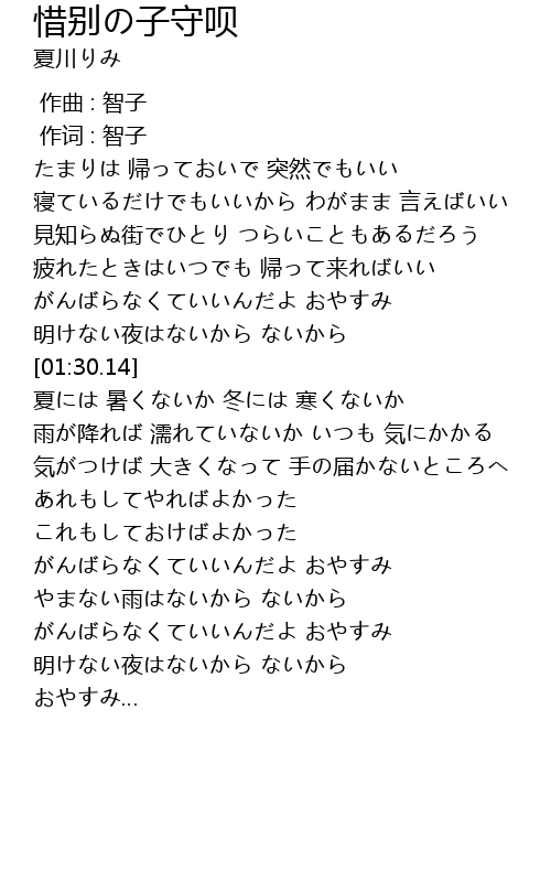 | [01:04.76] | がんばらなくていいんだよ おやすみ |