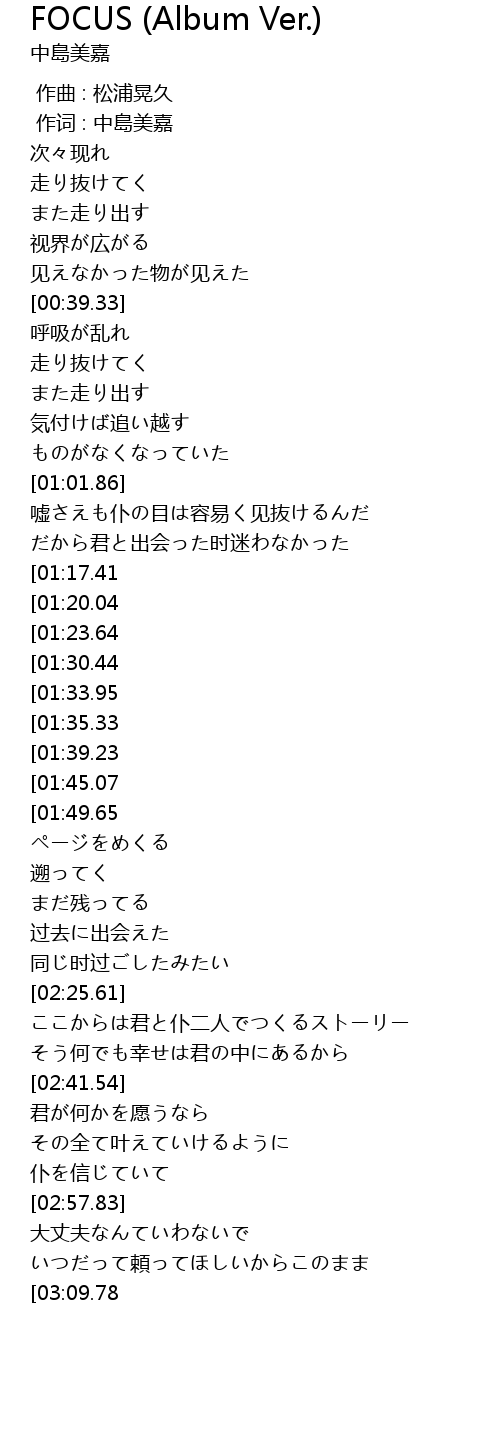 | [03:30.31][01:39.23] | ただ见つめていたいほどに辉く |
