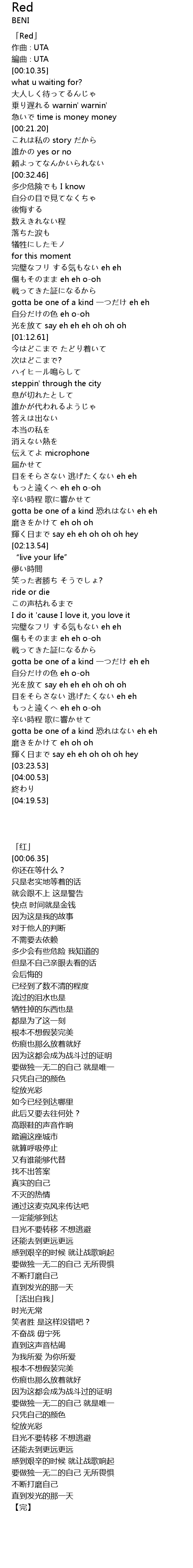 | [03:18.77] | hui ri say eh eh oh oh oh hey |