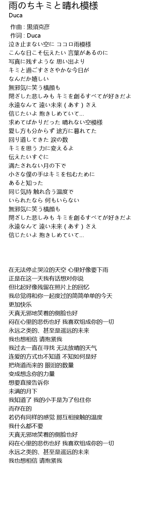 | [03:39.71] | 閉ざした悲しみも キミを創るすべてが好きだよ |