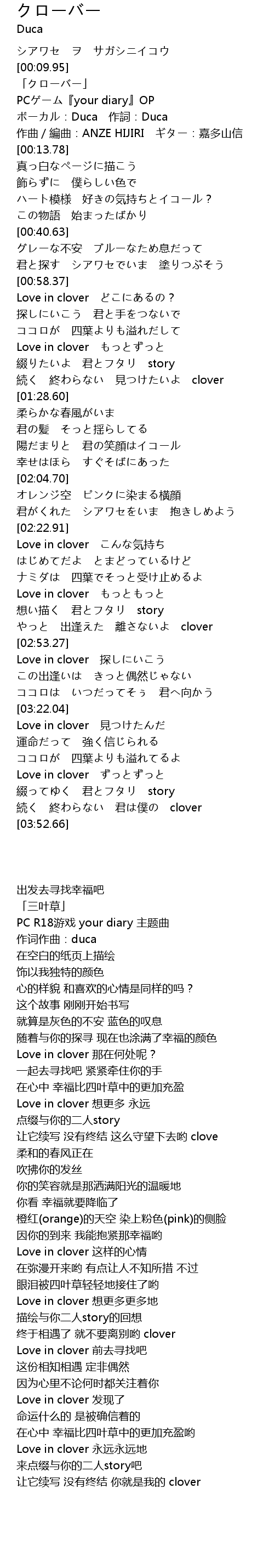 | [03:35.58] | Love in clover ずっとずっと |
