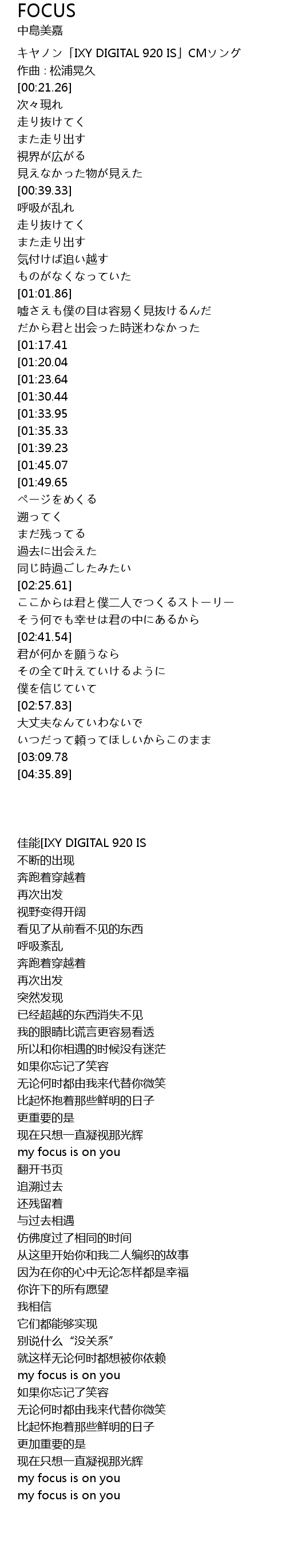 | [00:06.26] | キヤノン「IXY DIGITAL 920 IS」CMソング |
