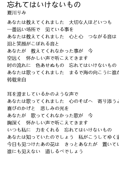 | Song | 忘れてはいけないもの |
