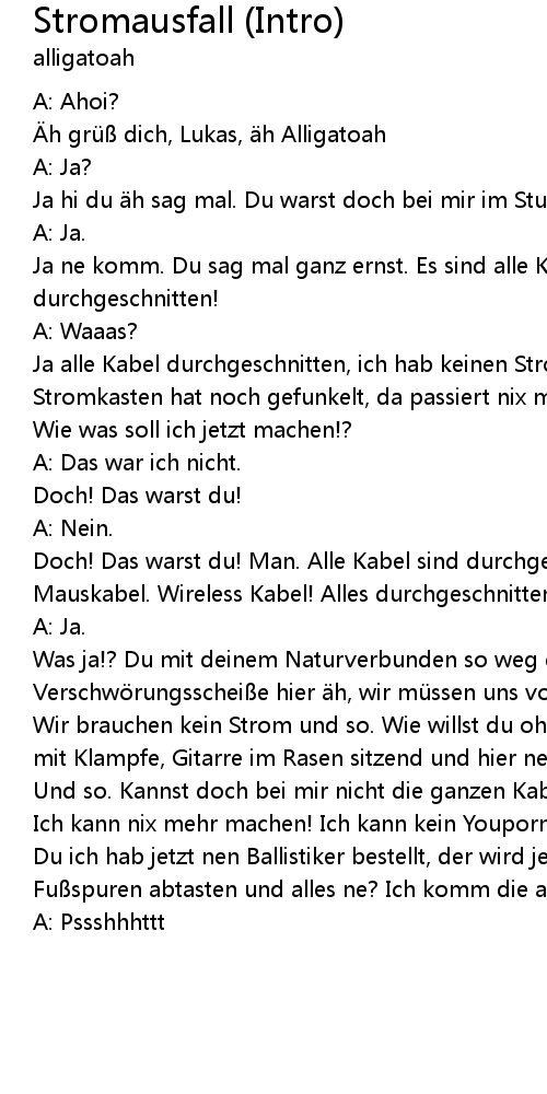 | [00:07.96] | Äh grüß dich, Lukas, äh Alligatoah |