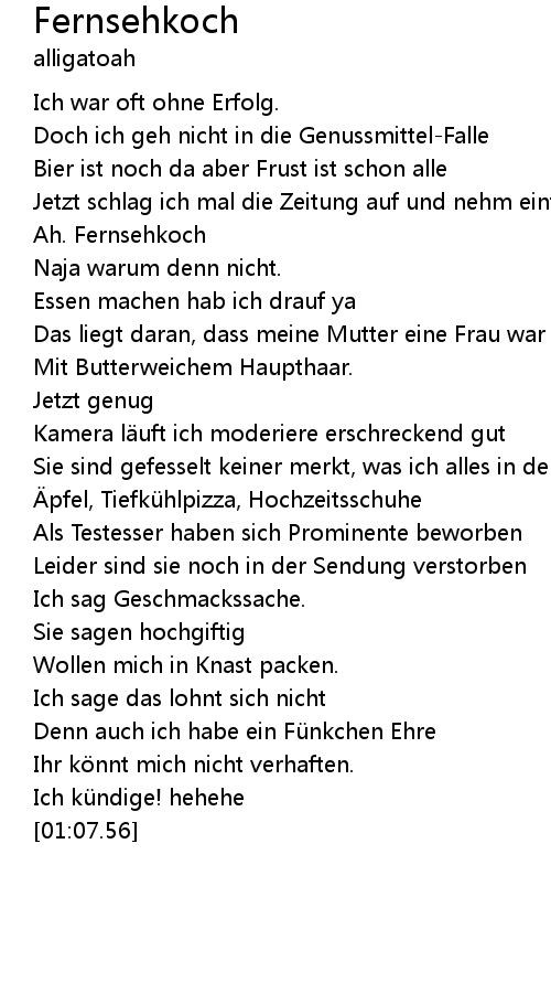 | [00:46.28] | Sie sind gefesselt keiner merkt, was ich alles in den Topf rein tue |