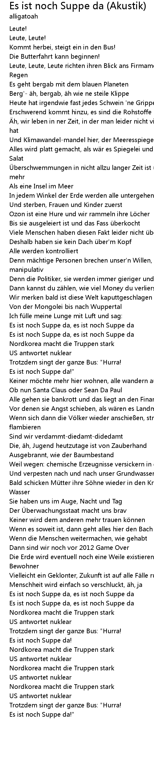 | [01:12.34] | Es ist noch Suppe da, es ist noch Suppe da |
