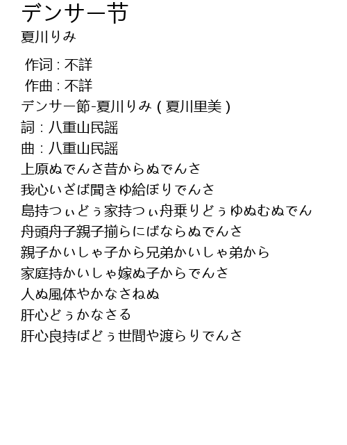 | [00:00.00] | デンサー節-夏川りみ(夏川里美) |