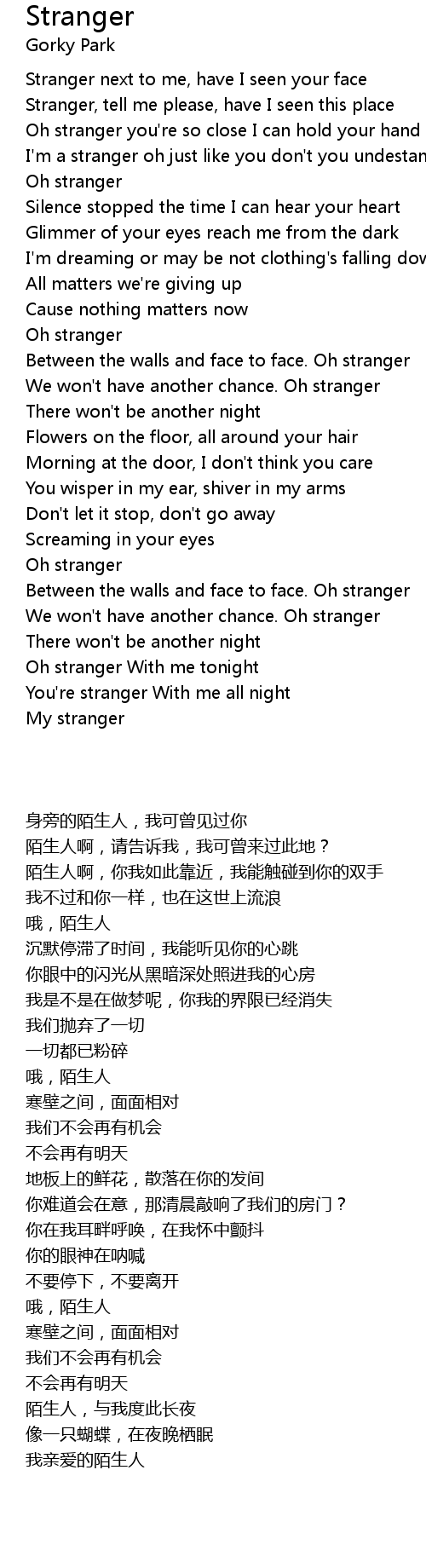 Between the walls and face to face. Oh stranger |