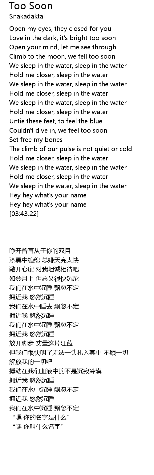 Hold me closer, sleep in the water |