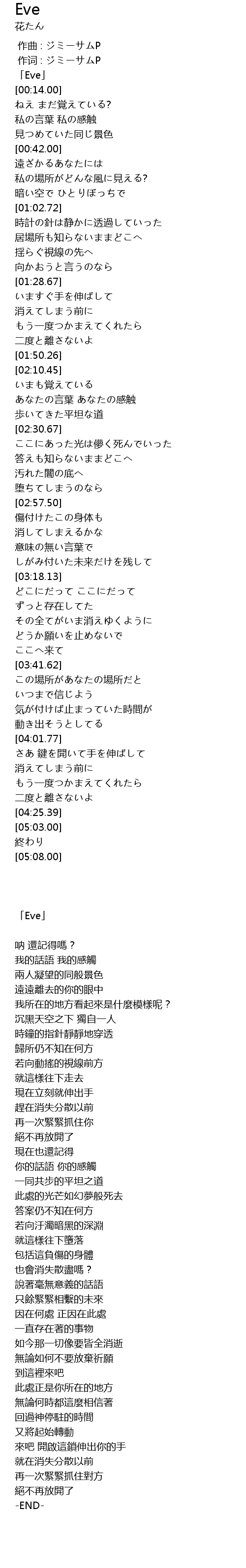 作词 : ジミーサムP |