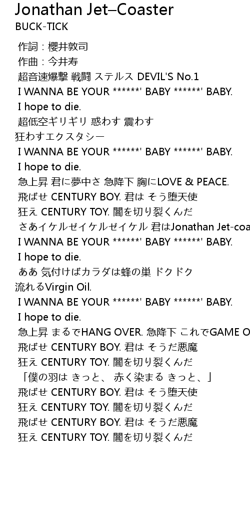 | [00:40.424] | I WANNA BE YOUR ******' BABY ******' BABY. |