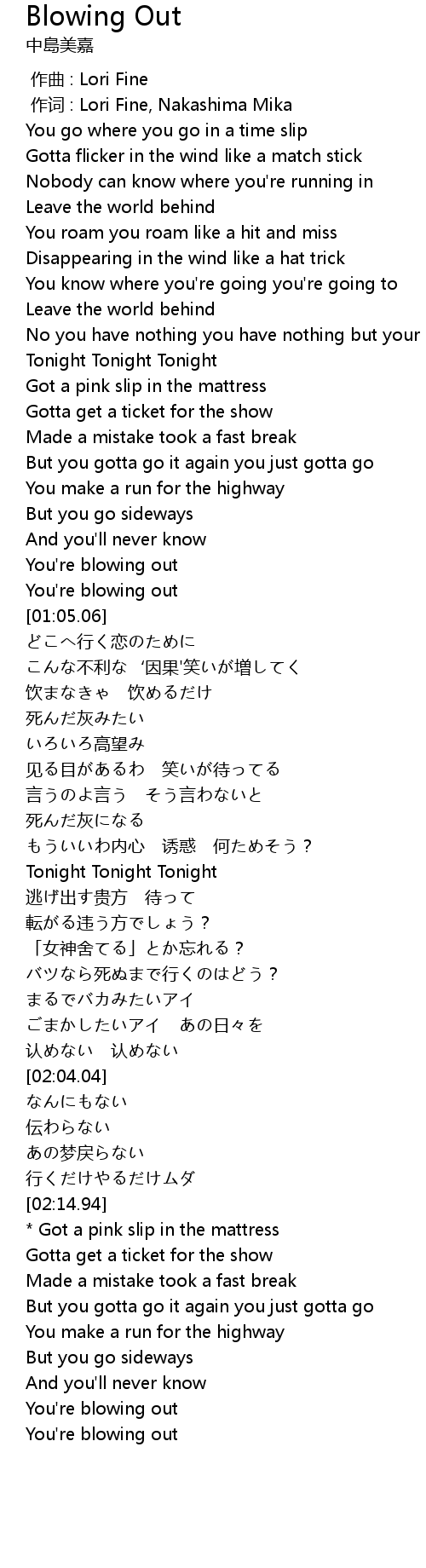 | [00:01.00] | 作词 : Lori Fine, Nakashima Mika |