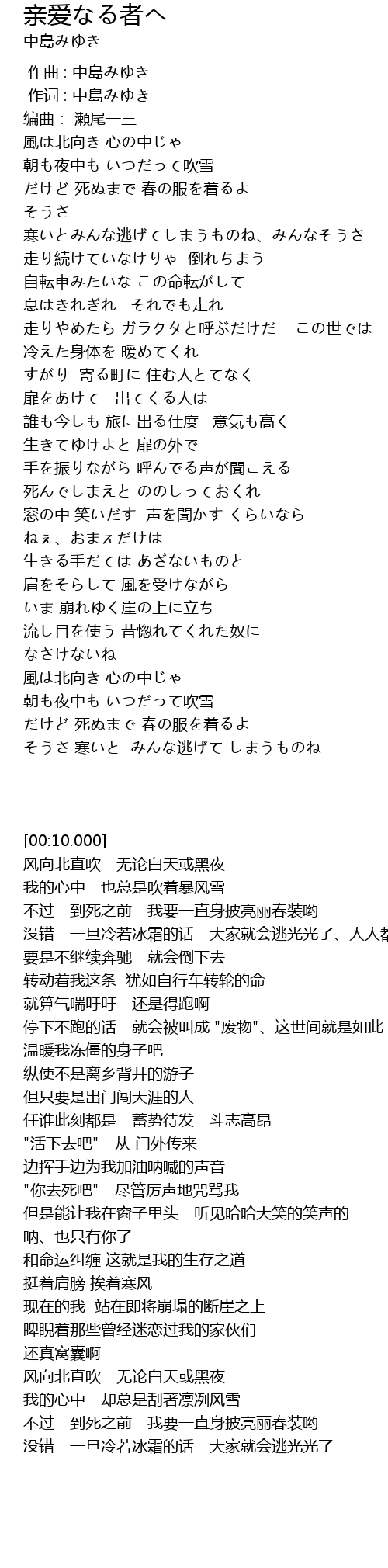 | [00:13.700] | 風は北向き 心の中じゃ |