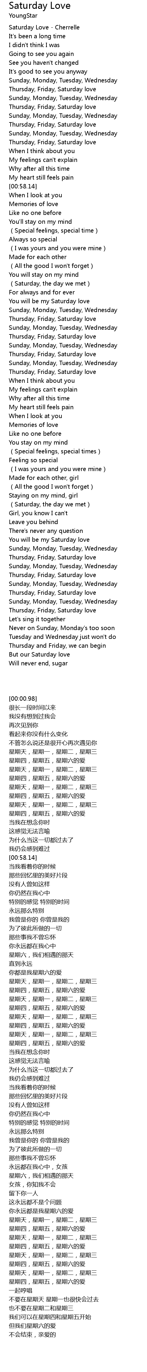 | [00:38.29] | Sunday, Monday, Tuesday, Wednesday |
