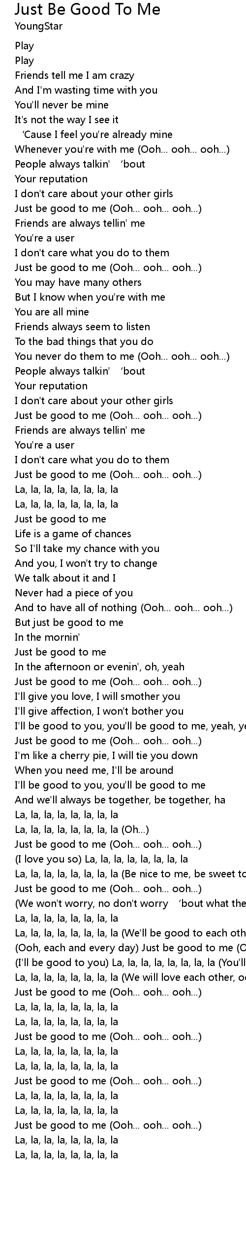 | Just be good to me (Ooh... ooh... ooh...) | |