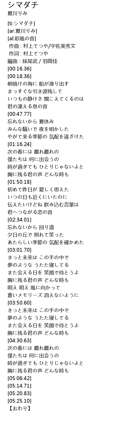 | [00:35.09] | いつもの静けさ 聞こえてくるのは |