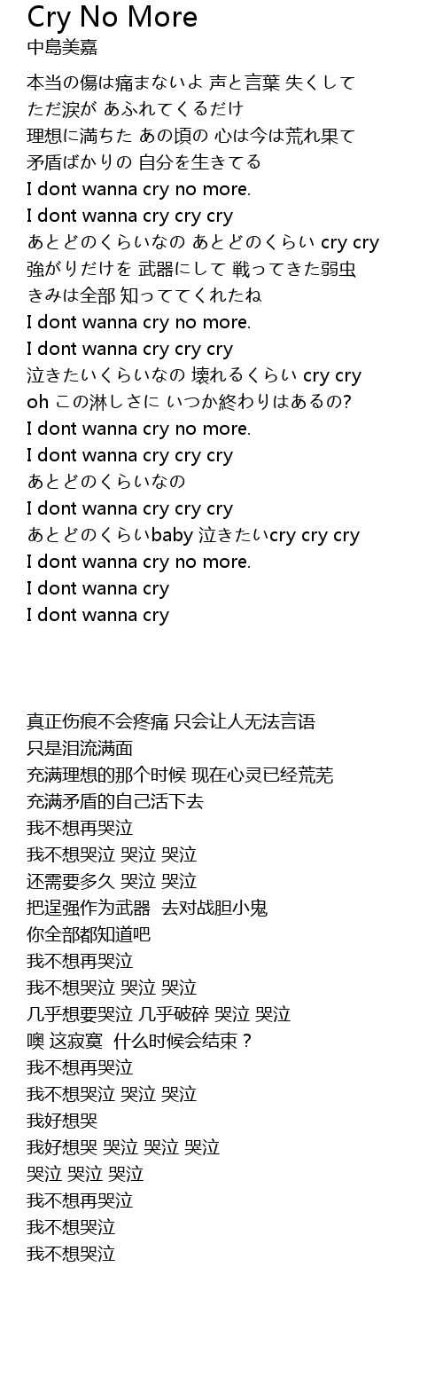 | [01:14.40] | I dont wanna cry no more. |