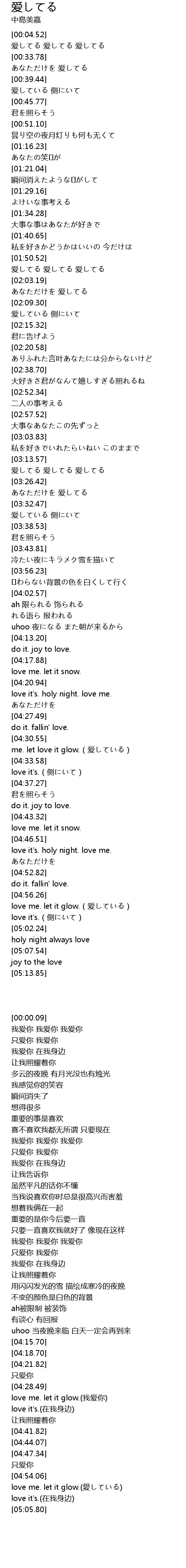 | [01:54.77] | 爱してる 爱してる 爱してる |