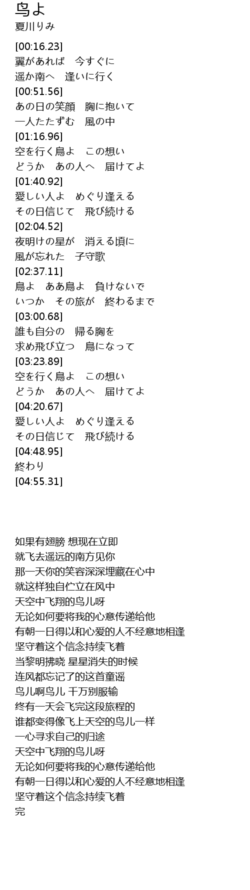 | [02:38.03] | 鳥よ ああ鳥よ 負けないで |