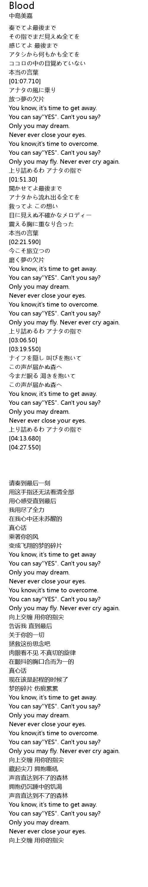 | [02:50.680] | Only you may fly. Never ever cry again. |