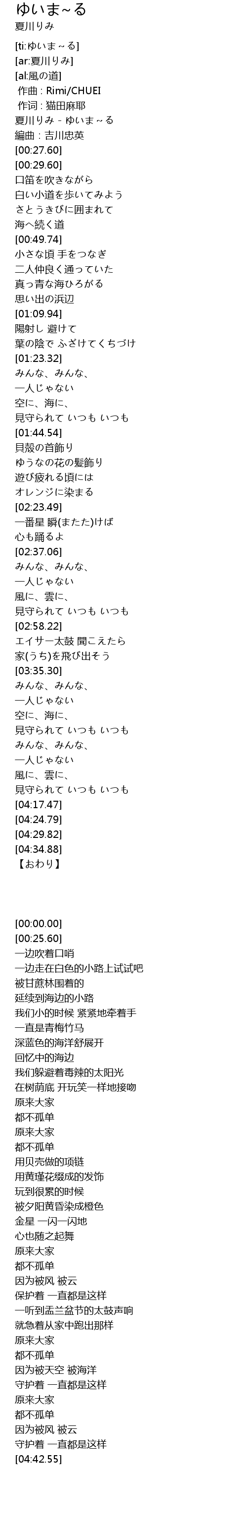 | [00:00.00] | 夏川りみ - ゆいま~る |