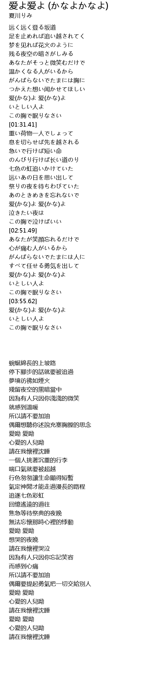 爱(かな)よ 爱(かな)よ |