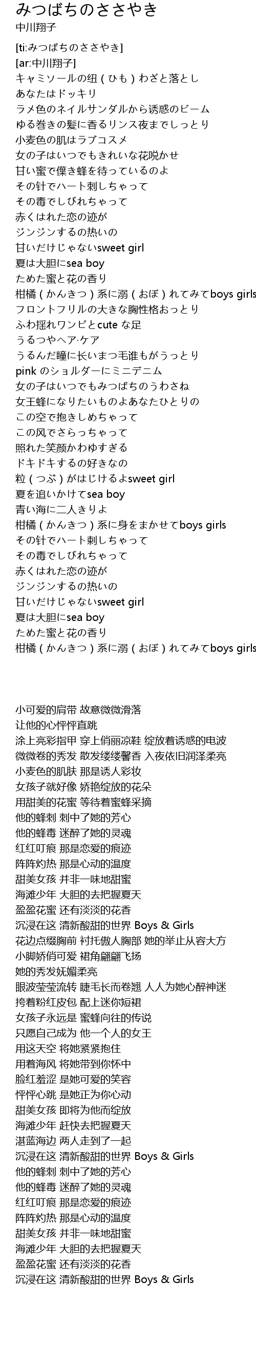 | [02:04.176] | 女の子はいつでもみつばちのうわさね |