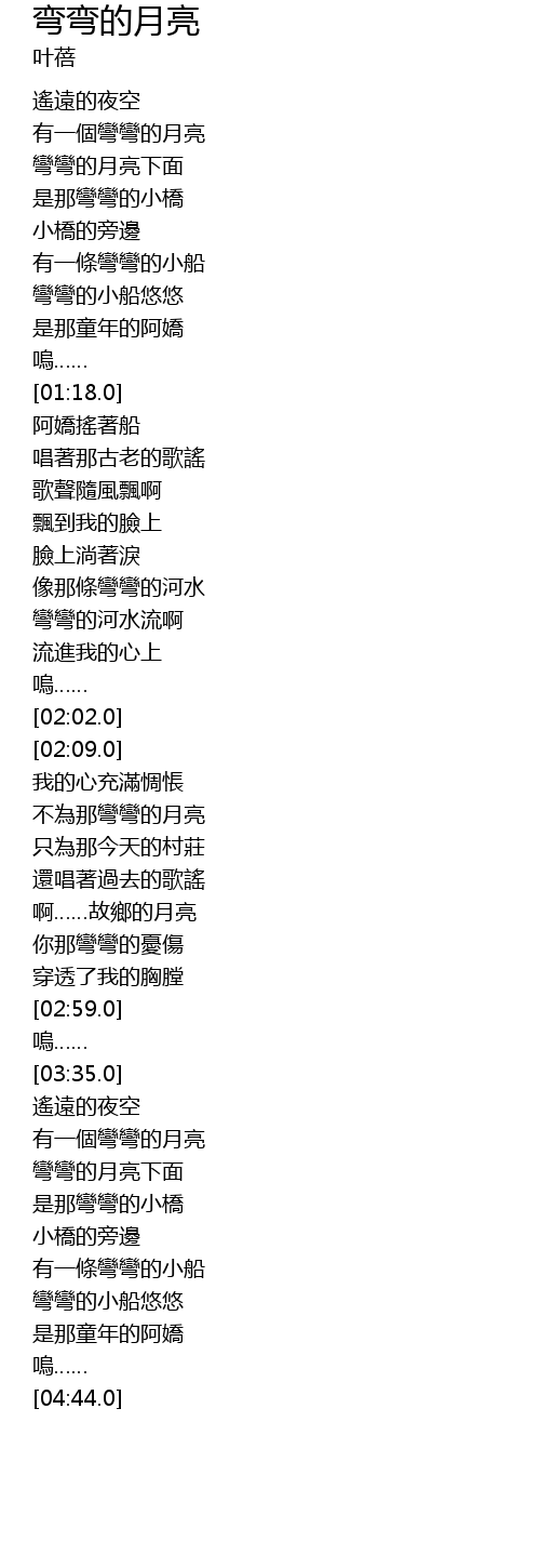 | [03:41.0] | yǒu yī gè wān wān de yuè liàng |