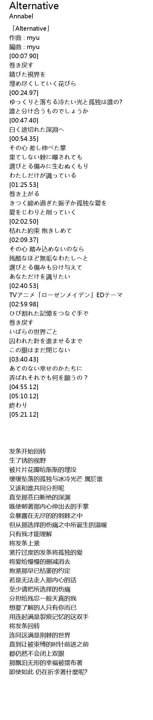 | [02:49.98] | TVアニメ「ローゼンメイデン」EDテーマ |