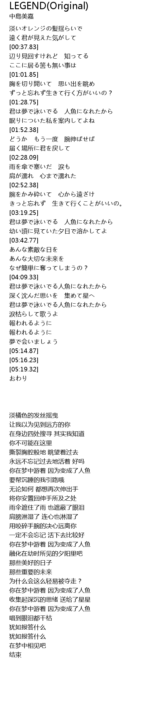 | [04:34.34] | 君は夢で泳いでる人魚になれたから |