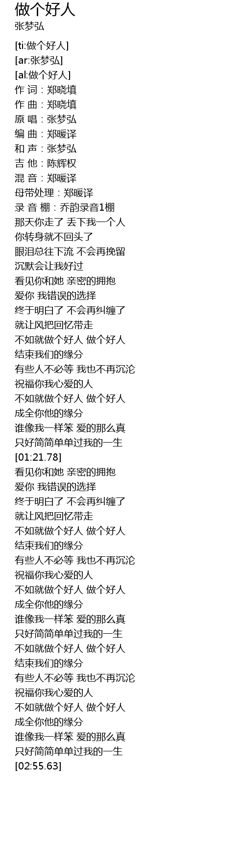 | [02:37.00] | bù rú jiù zuò gè hǎo rén zuò gè hǎo rén |