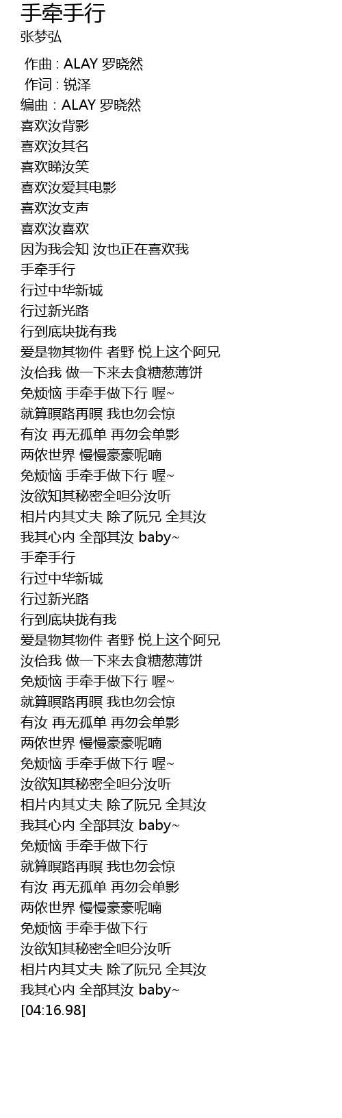 | [00:48.90] | shǒu qiān shǒu xíng |