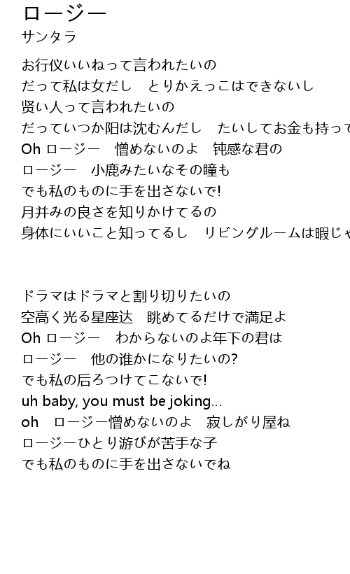 | oh ロージー憎めないのよ 寂しがり屋ね | |