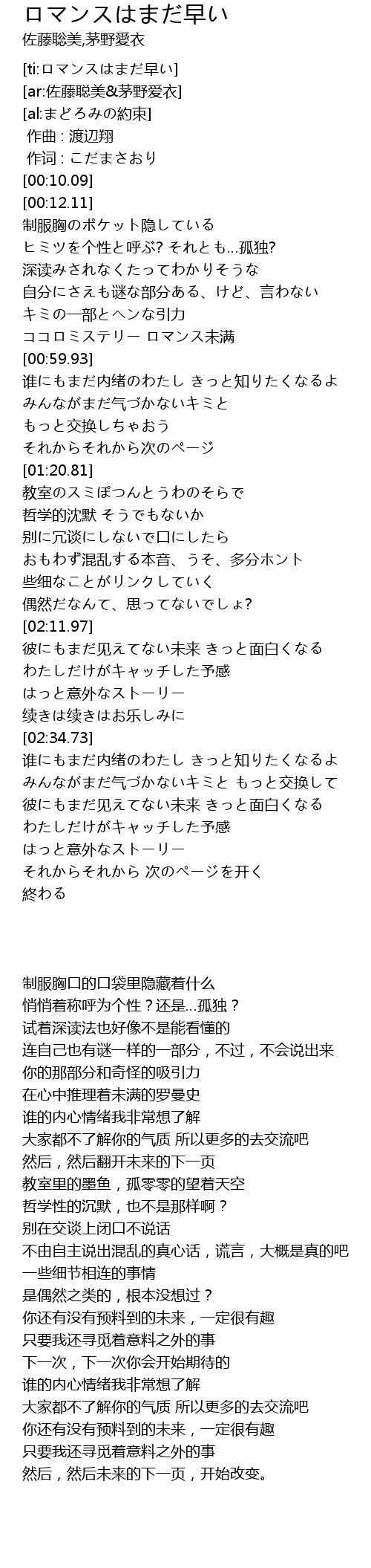 | [ti:ロマンスはまだ早い] | |