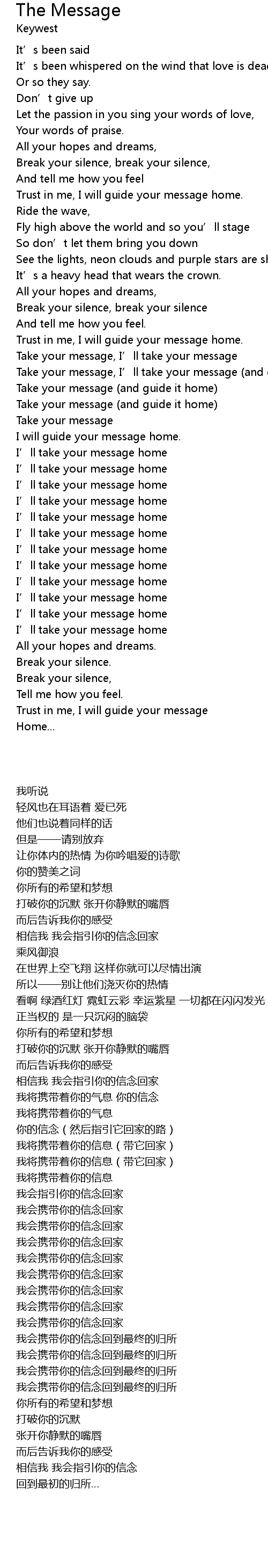 | [02:54.77] | Take your message (and guide it home) |