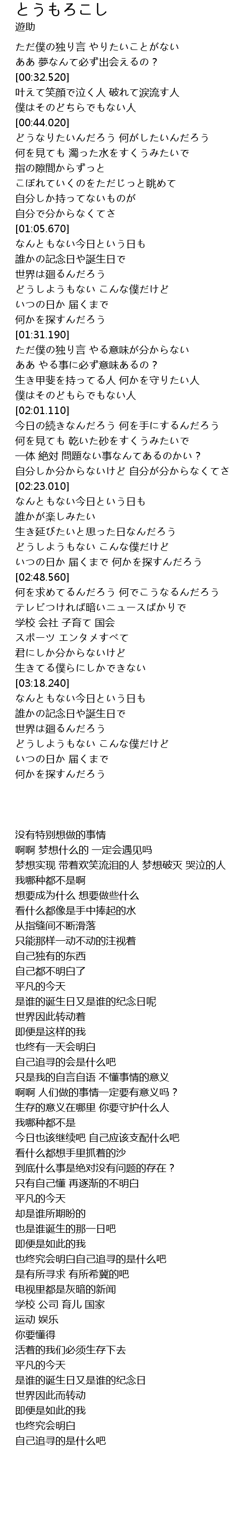 | [01:39.750] | ただ僕の独り言 やる意味が分からない |