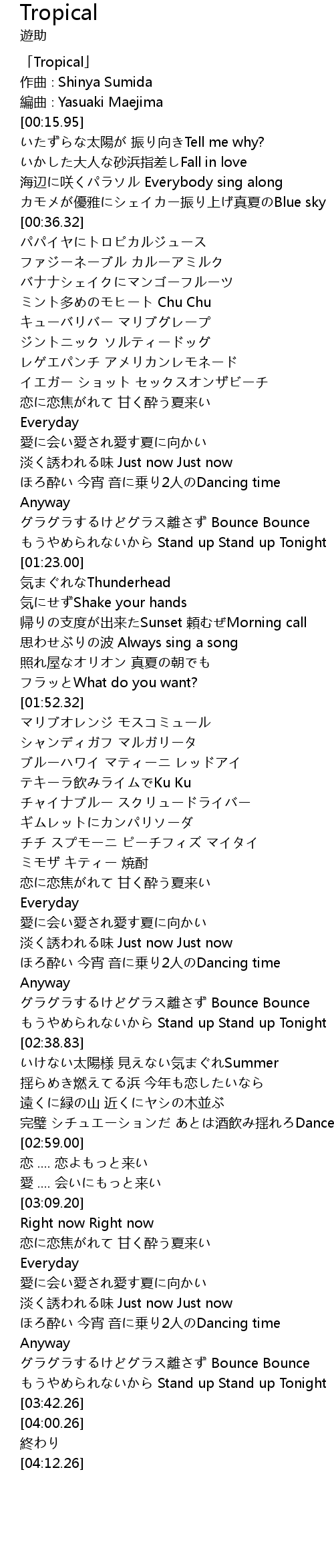 | [00:37.03] | パパイヤにトロピカルジュース |