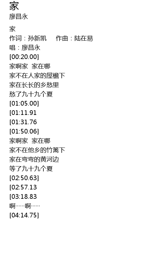 | [01:38.60][01:31.76][01:18.44] | 家像那月儿高高的挂 |