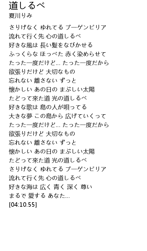 | [03:19.53] | さりげなく ゆれてる ブ一ゲンビリア |