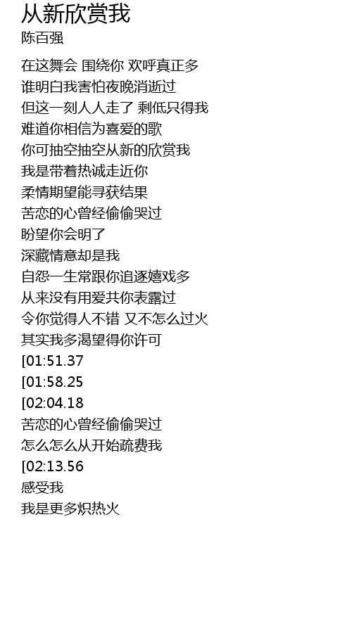 | [02:23.04][01:51.37] | 你可抽空抽空从新的欣赏我 |