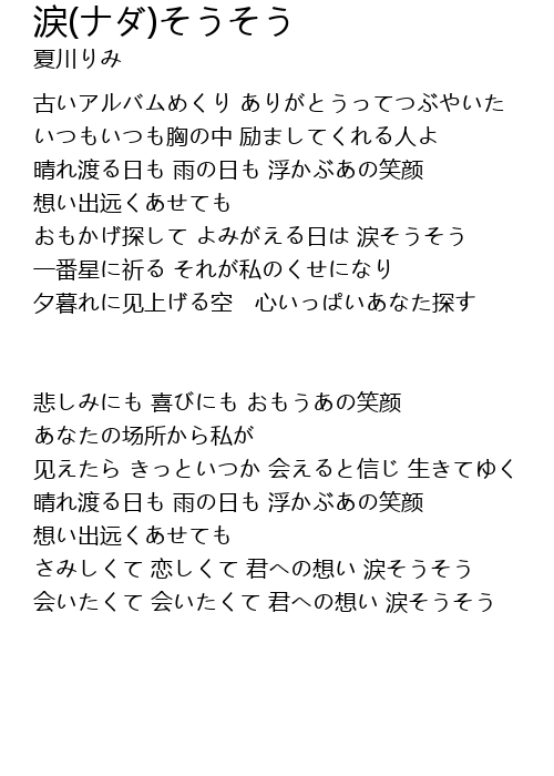| さみしくて 恋しくて 君への想い 涙そうそう | |