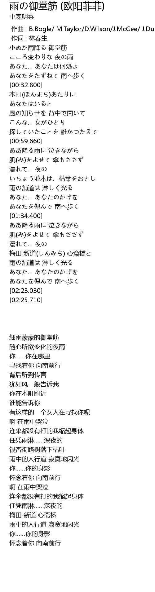 | Song | 雨の御堂筋 (欧阳菲菲) |