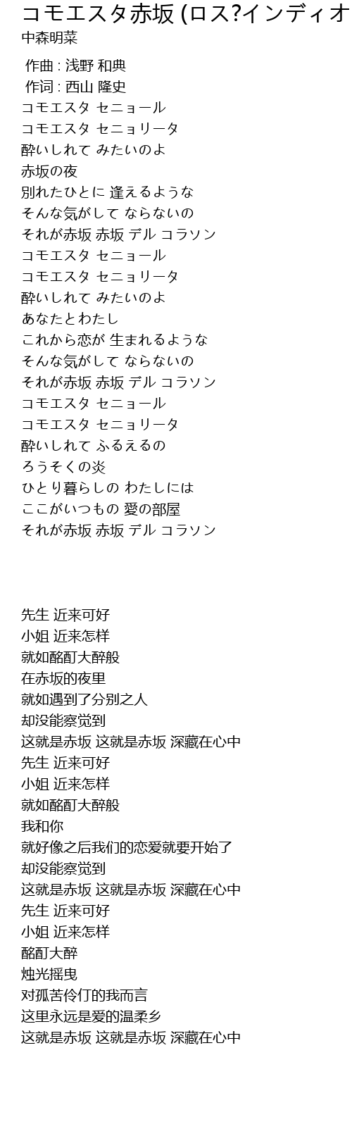 | [00:43.10] | それが赤坂 赤坂 デル コラソン |