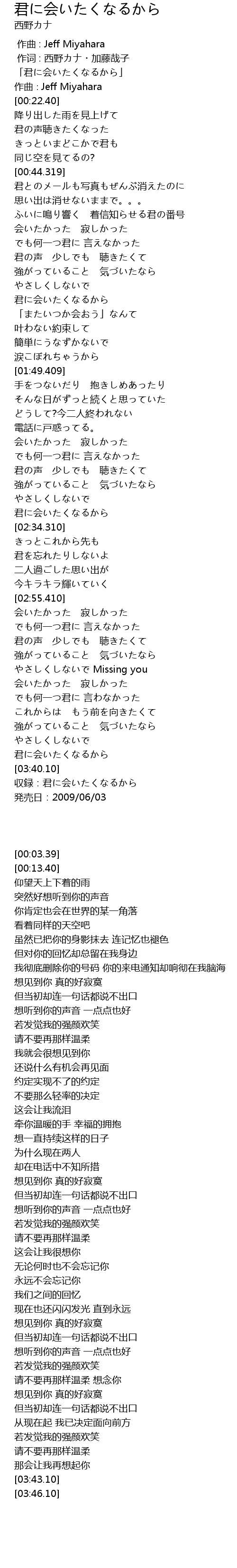 | [00:01.00] | 作词 : 西野カナ・加藤哉子 |