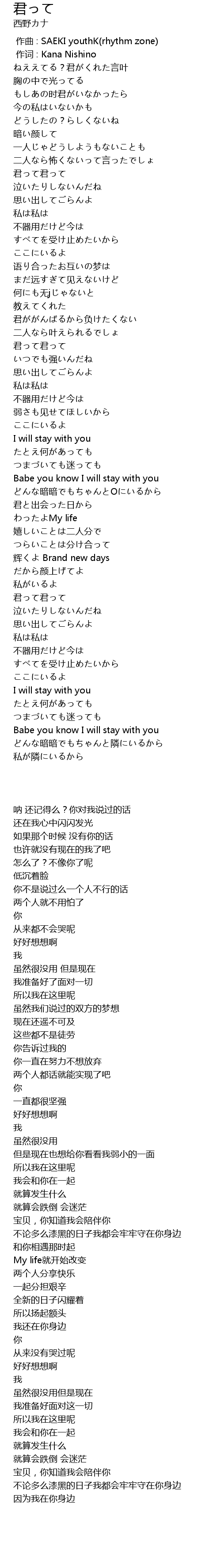 | [00:01.00] | 作词 : Kana Nishino |