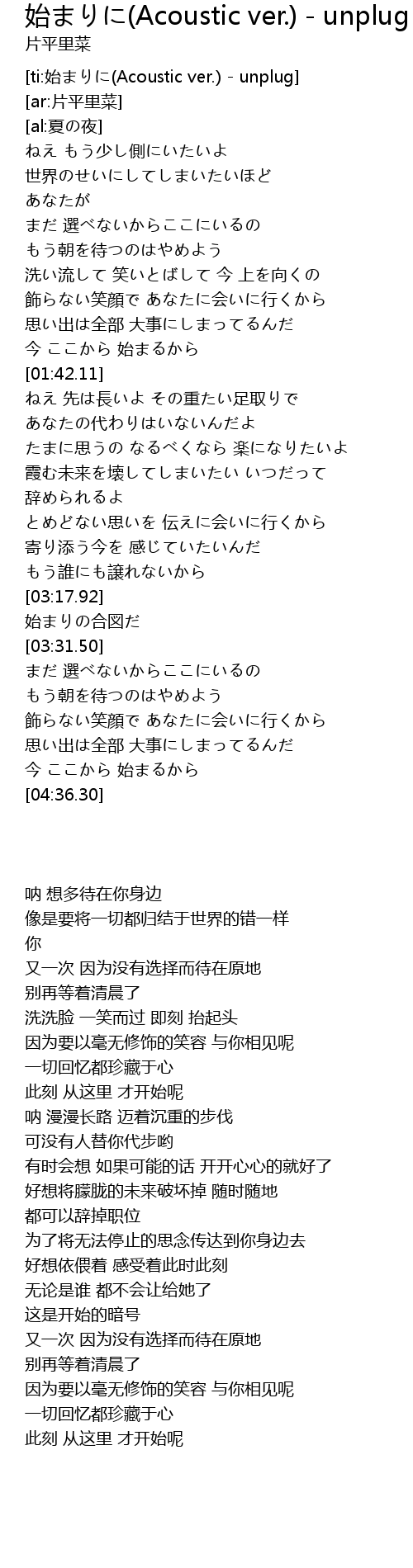 | [ti:始まりに(Acoustic ver.) - unplug] | |