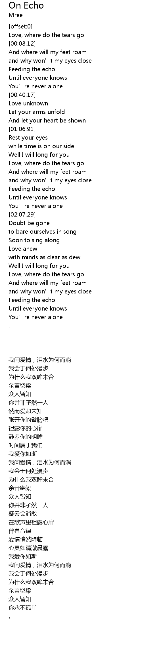 | [02:00.04] | You' re never alone |