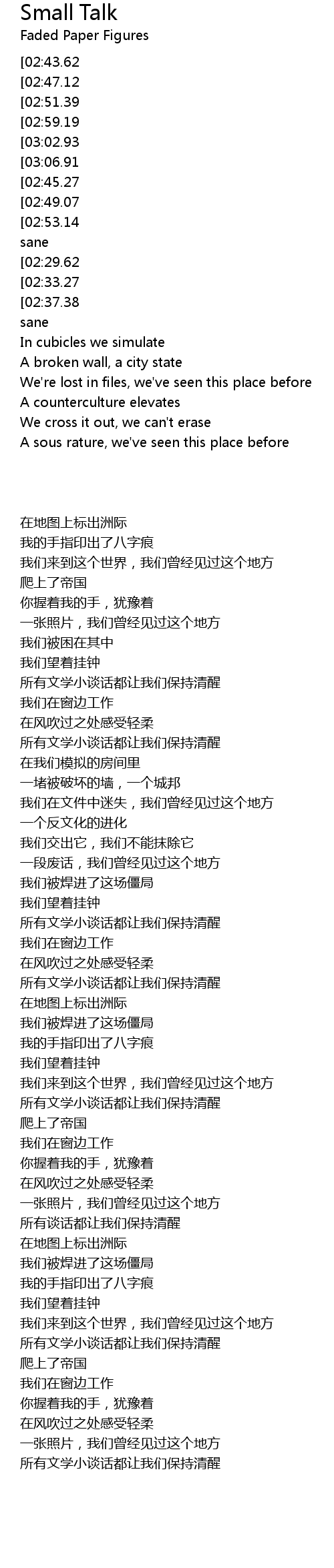 [02:22.05][02:53.14][01:49.45][00:47.10] All the literate small talk keeps us sane