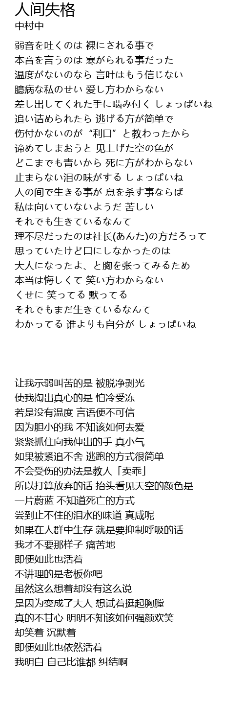| [00:56.48] | 差し出してくれた手に啮み付く しょっぱいね |
