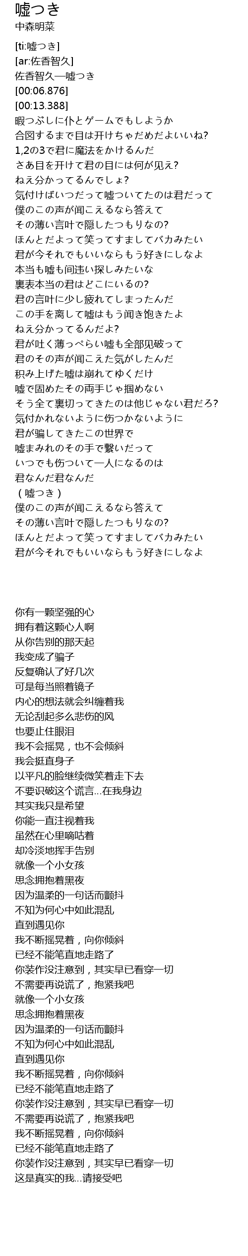 | [00:00.672] | 佐香智久—嘘つき |